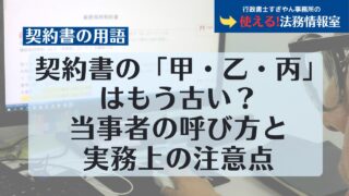 契約書の基礎 契約書の「甲・乙・丙」はもう古い?当事者の呼び方と実務上の注意点 契約書の「甲・乙・丙」は、単に当事者の順番を示すための伝統的な記号です。しかし、長文の契約書では読み間違いや表記の入れ替わりが発生しやすく、実務上のリスクがあります。近年は、会社名の略称や「売主・買主」などの役割表記を使うケースが増えています。ミス防止と可読性向上のため、より明確な表記方法を選ぶことが重要です。 2022.12.21 2026.03.23 契約書の基礎