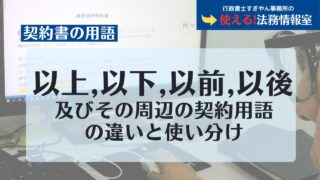 契約書の基礎 以上、以下、以前、以後 及びその周辺の契約用語の違いと使い分け 「以上・以下」はその数値を含み、「未満・超える」は含まないという明確な違いがあります。契約書では、この差が報酬率や条件の適用範囲に大きく影響します。特に境界値(ちょうど100万円など)で誤解が起きやすい点に注意が必要です。正しい使い分けを理解することで、条文の誤読やトラブルを防げます。 2022.12.23 2026.03.23 契約書の基礎