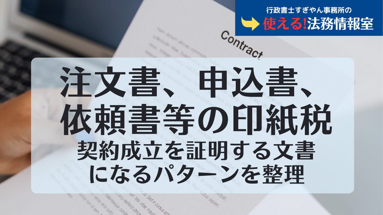 しかし、注文書、申込書、依頼書等と称する文書であっても、契約の成立を証明する目的で作成された文書である場合は印紙税の課税対象になります。